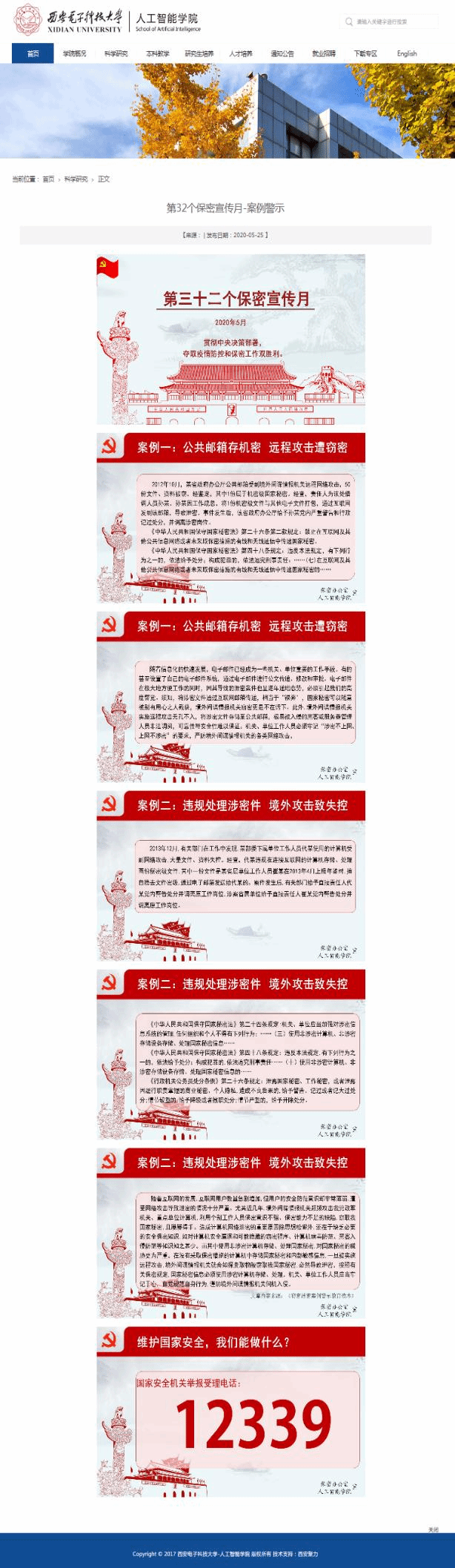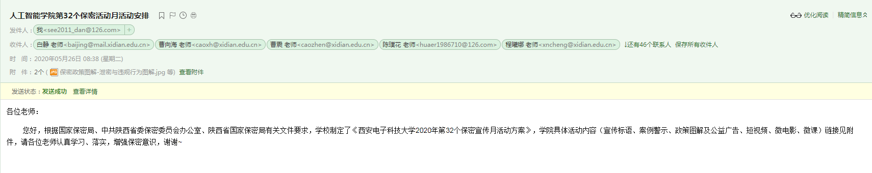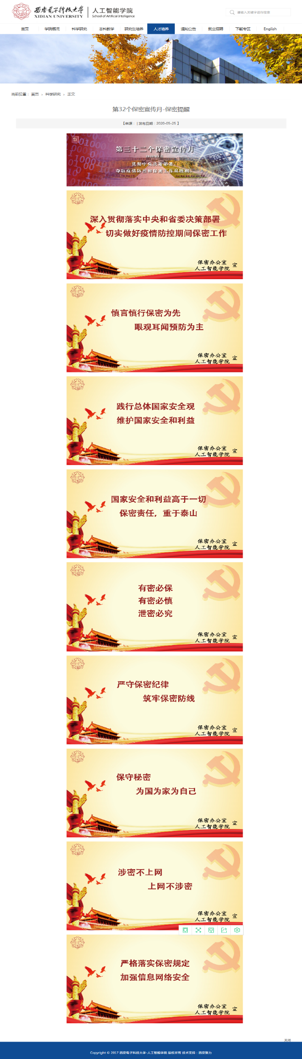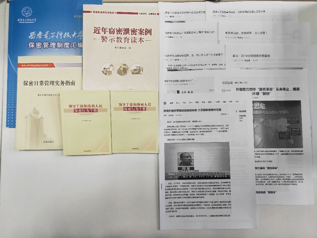 此外,vwin德赢ac米兰官方网还制作了宣传标语、案例警示和系列学习资料清单,以展板、邮件、微信、学院网站和走廊电子屏幕等多种形式发布保密宣传教育相关信息,全方位向全体教师和广大学生推送保密提醒。