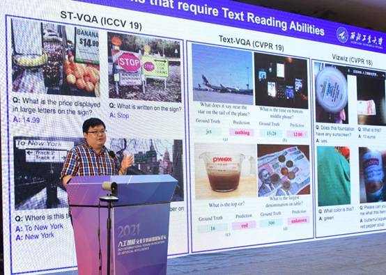 王鹏教授的报告是以视觉与语言理解中的“Richer”和“Deeper”来展开讨论的。他以场景文本阅读、目标检测和场景分类等为例来说明视觉与语言理解需要丰富的视觉信息,同时,当任务水平越高时,所需的外部知识越深层。