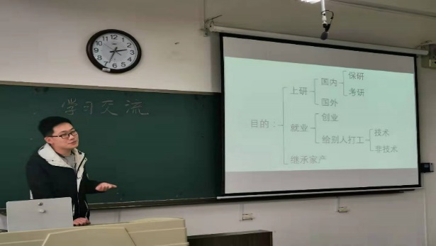 首位介绍的是学姐张言越,她成功保研并直博东南大学,将其优秀的学习方法和努力的方向细致地分享给了学弟学妹们,她强调上课重要的是记录的过程而非结果,要充分利用课堂时间。第二位学长周文浩,成功保研清华大学,主要介绍保研方法和竞赛方向,他将各大竞赛一一道来,针对同学们不同的情况进行推荐。第三位学长刘向阳,成功保研复旦大学,向我们分享了他不仅学术还有生活方面的经验,尤其他的大学学习竞赛科研的经历和遗憾。交流互动问答环节中,学长学姐现场为新生解疑答惑,并针对新生的问题给出详细满意的答复,着实让同学们受益匪浅。最后由程曦娜老师再次详实地总结了三位学长学姐的分享。
