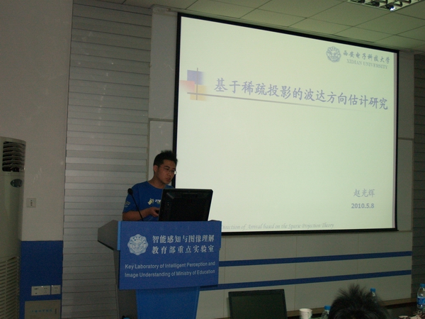 在这一次学术交流活动中,来自我校“智能感知与图像理解”教育部重点实验室、雷达信号处理国家重点实验室及西北工业大学陕西省语音与图像处理重点实验室的一批优秀教师、博士后、博士研究生、硕士研究生也分别就方向滤波器组研究、无损信息隐藏、极化合成孔径雷达图像分割与地物识别、基于稀疏投影的波达方向估计、SAR图像处理方法、压缩感知学习、协同进化多目标优化算法、实验室遥感数据资源介绍与应用等相关研究领域进行了生动介绍与热烈探讨。