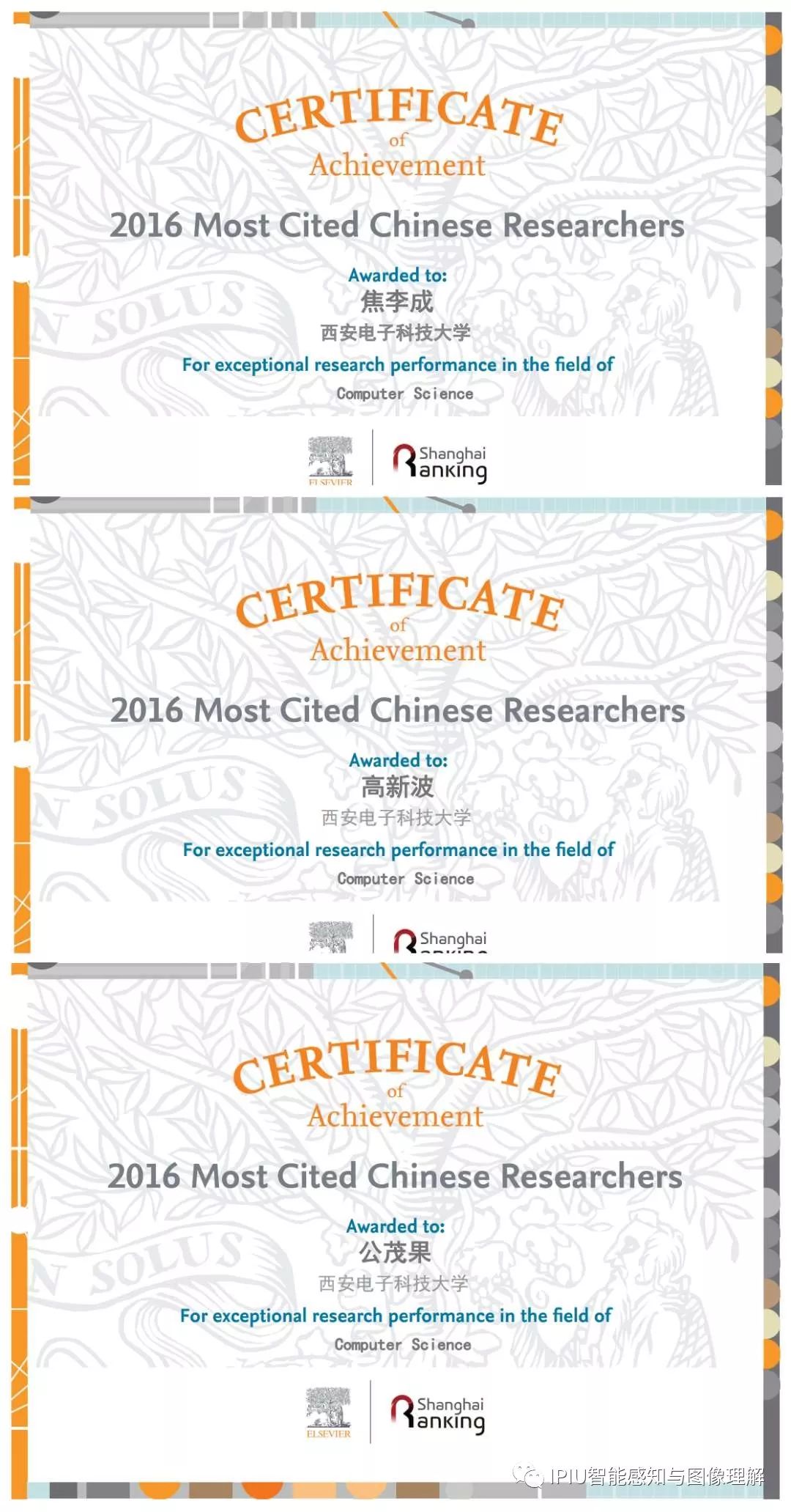 2017年2月27日,vwin德赢ac米兰官方网7位教授入选爱思唯尔发布的“2016年中国高被引学者(Most Cited Chinese Researchers)榜单”,智能感知与图像理解教育部重点实验室焦李成教授、高新波教授和公茂果教授占据三席,且这已是三位教授连续三年入选该榜单。