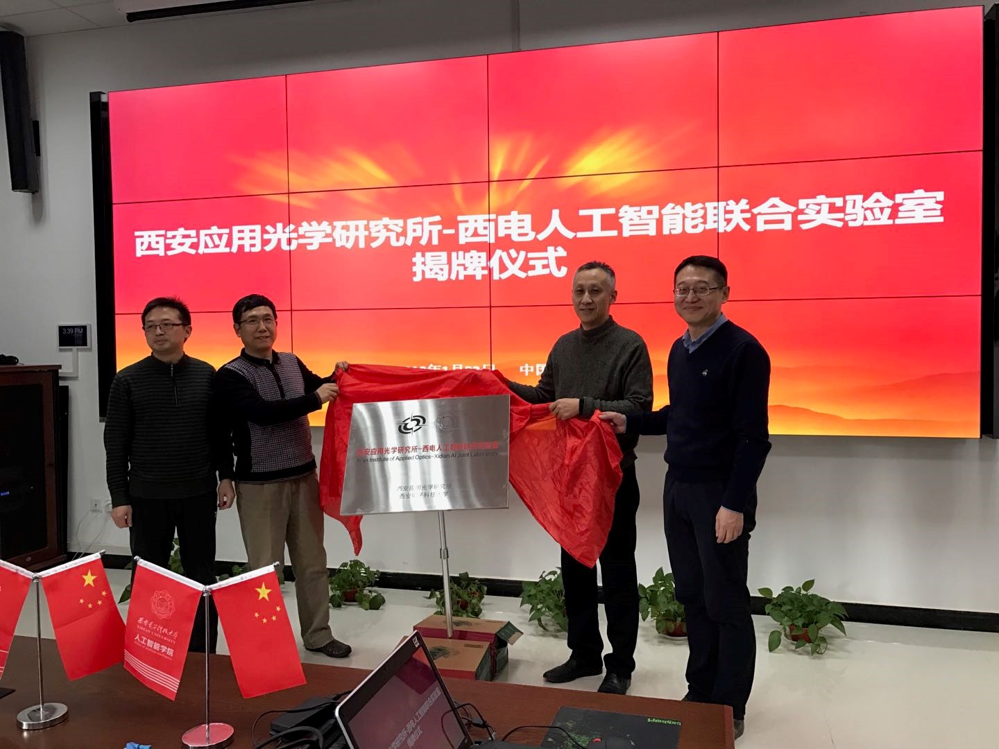 1月22日,vwin德赢ac米兰官方网-西安应用光学研究所人工智能联合实验室揭牌仪式在vwin德赢ac米兰官方网举行。光电集团总工程师崔东旭、西安应用光学研究所副所长陈方斌及相关部门负责人,西电校长助理王泉,科研院、研究生院、vwin德赢ac米兰官方网负责人出席并为联合实验室成立揭牌。