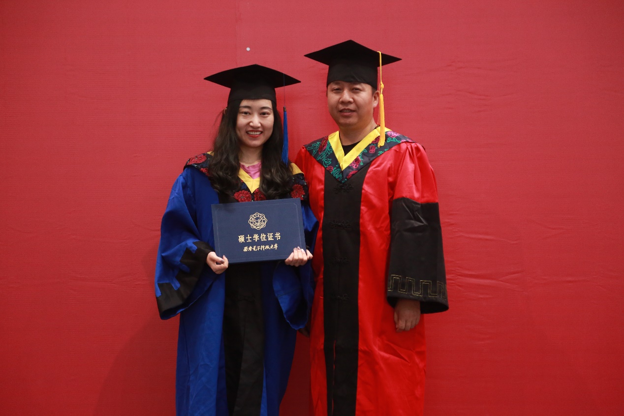 优秀毕业生代表刘旭博士在发言中首先感谢学院的老师们以严谨的治学态度、前沿创新的学术思想、开拓进取的科研精神,犹如灯塔般引领同学们在求学路上中翻山越岭、扬帆远行;感谢老师们指引学生修身治学、砥砺思想、情怀家国,为学生的学习生活保驾护航、遮风挡雨。刘旭满怀感恩地说道,每一位毕业生同学都将与他一样,带着母校的关爱,带着西电艰苦奋斗、自强不息的精神,带着梦想,再次出发。无论身在何处,无论居于何职,西电人的根和魂会永远留在母校。他倡导毕业生们以国家发展、社会进步、人民幸福和人类福祉为先,心怀使命、肩负责任,做有价值、有影响力、有意义的事业和工作,不忘初心,砥砺奋进,在实现中国梦的伟大实践中,书写别样精彩。