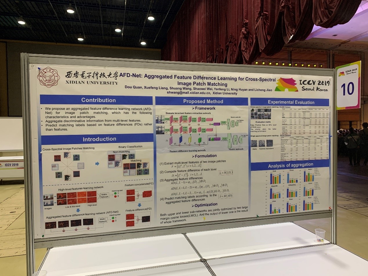 由vwin德赢ac米兰官方网梁雪峰教授、王爽教授和焦李成教授指导,博士生权豆等完成的论文《AFD-Net: Aggregated Feature Difference Learning for Cross-Spectral Image Patch Matching》以及硕士生李彦峰等完成的论文《Better and Faster: Exponential Loss for Image Patch Matching》被ICCV 2019录用,其中“AFD-Net” 为口头报告(Oral)论文,而ICCV 2019的Oral录用比例仅为4.62%。