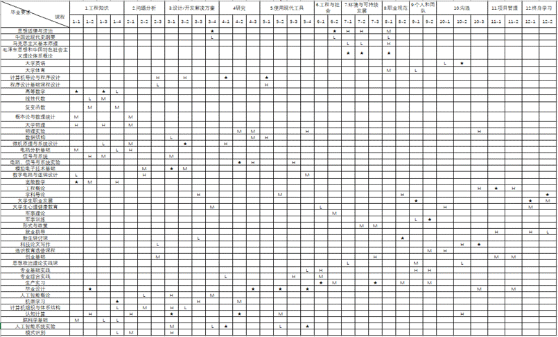 1.工程知识:掌握本专业所需的数学、自然科学、工程基础和人工智能的专业知识,能将上述知识用于解决人工智能系统软硬件设计、图像处理算法设计等相关领域的复杂工程问题。