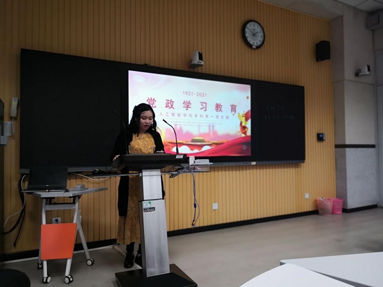 会议最后由支部副书记范紫琪作总结发言:“千年期盼,一朝梦圆。红旗渠是自力更生、艰苦创业的典范,不仅给后人留下了可以浇灌几十万亩田园的水利工程,更重要的是留下了宝贵的红旗渠精神。林县人民不仅把愚公移山的神话永远定格在太行山上,更把中国道路、中国力量和中国精神,镌刻在了这座太行丰碑之上。十年的功力与汗水、十年的艰辛与智慧、十年的心血与砥砺、十年的追梦与收获,孕育形成了‘自力更生、艰苦创业、团结协作、无私奉献’的红旗渠精神,深刻诠释了‘实干兴邦’的箴言。时光流转,穿越千年。红旗渠精神由前辈们塑造,由我辈来传承发扬。习近平总书记曾说‘时代的责任赋予青年,时代的光荣属于青年’,生逢盛世,我们成长在祖国高速发展的时期,人工智能产业方兴未艾,为我们的发展提供了广阔的舞台和有利的条件,能在这样的背景下追梦、圆梦,是我们的幸运,更是一份沉甸甸的责任。我们青年学子必当志存高远、脚踏实地,学习林县人民不怕苦、不怕累的精神,以咬定青山不放松的韧性和魄力走好我们这一代人的长征路,做那奔腾向前的洪流中一朵微小的浪花,为中华民族的伟大复兴奉献自己的一份力量。”