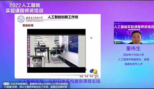 vwin德赢ac米兰官方网副院长董伟生教授带来“人工智能实验:从知识体系构建到课程实践”主题报告。他首先介绍了在重点领域项目管理办公室指导下、在教育部人工智能课程资源建设项目和实验课程虚拟教研室项目支持下所做的课程知识体系和课程资源建设成果,并结合知识体系中的基础实验和应用实验两个模块的具体内容,梳理了人工智能专业知识体系构成、课程知识图谱构建,以及专业核心课程资源建设规划。随后,介绍了西电vwin德赢ac米兰官方网在人工智能实验课程方面的建设情况,通过深度学习基础实验、嵌入式平台深度模型部署、智能小车、智能系统综合实验等几个系列实验案例,介绍了相关实验课。最后分享了学生人工智能创新工作坊建设方面的一些经验做法。