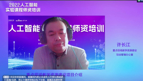 重点领域教学资源建设项目管理办公室许长江表示,此次培训活动的举办为广大人工智能专业教师提供了很好的平台,对人工智能实验课程的建设具有重要意义。他指出,人工智能实验课程是专业教学中的重要板块,但相对理论教学而言,实验教学环境条件和师资力量目前都非常缺乏。希望国内先进高校和头部企业发挥积极作用,通过优质资源共享和师资力量培训,逐步构建起较为完整的实验教学体系,带动全国高校同类专业课程建设整体水平的提升。同时,希望更多专家学者在重点领域项目建设过程中,发挥虚拟教研室的作用,持续推进人工智能实验领域的知识图谱建设,将实验资源建设和学生能力素质培养有效关联,用完整的实验教学体系支撑人才培养目标实现。