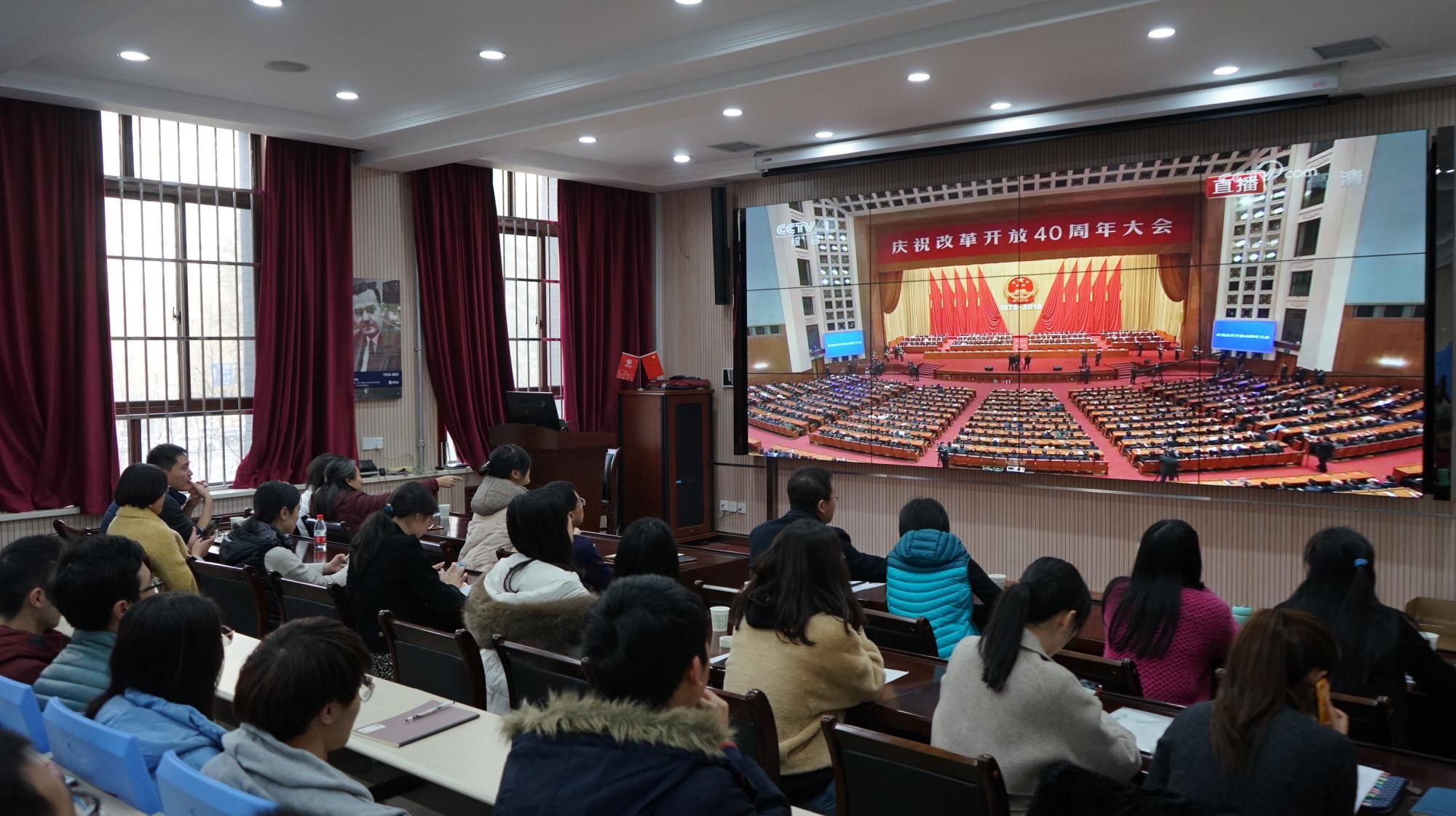 vwin德赢ac米兰官方网组织干部师生观看庆祝改革开放40周年大会