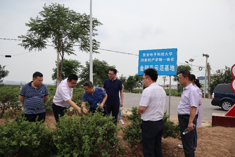 学院党委书记魏峻、副书记高晖及校扶贫办主任沈强一行首先来到“vwin德赢ac米兰官方网闫家村金银花产学研一体化示范基地”,走进田间地头实地了解金银花种植情况和技术需求,就航天宏图遥感技术的农业应用进行实地调研。三方在闫家村脱贫攻坚作战室召开科技扶贫应用座谈会,航天宏图西安分公司负责人、我校校友薄一民带领技术人员,向参会同志介绍了公司有关农业项目和遥感技术的应用前景。学校、企业以及蒲城地方三方还就进一步深化合作、推动项目落地落实,更好的服务蒲城金银花产业发展进行了深入交流。
